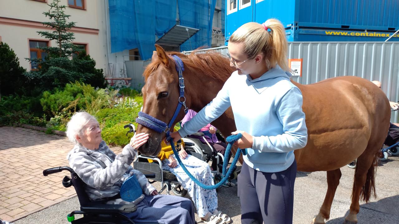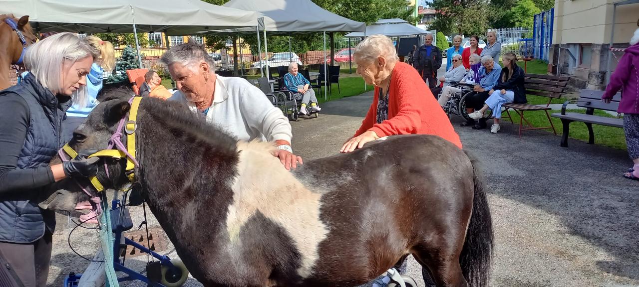 V létě navštívila klienty paní Lucie Venclová se svými koňmi. Klienti byli s návštěvy nadšeni a dlouho na ni vzpomínali.